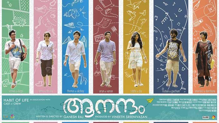പുതുമുഖങ്ങളെ അണിനിരത്തി ഗണേഷ് രാജ് സംവിധാനം ചെയ്ത ചിത്രമാണ്‌ ആനന്ദം. പേരുപോലെ തന്നെ കാണികളെ രണ്ട് മണിക്കൂര്‍ ആനന്ദിപ്പിക്കുന്നുണ്ട് ഈ സിനിമ. പ്രത്യേകിച്ച്, എഞ്ചിനീയറിംഗ് കോളേജില്‍ പഠിക്കുന്നവര്‍ക്ക് തങ്ങളുടെ ജീവിതത്തിന്റെ നേര്‍ക്കാഴ്ചയാണ്‌ ലഭിക്കുന്നത്. പഠിച്ചിറങ്ങിയവര്‍ക്കാകട്ടെ ഒരു നൊസ്റ്റാള്‍ജിക് അനുഭവവും.